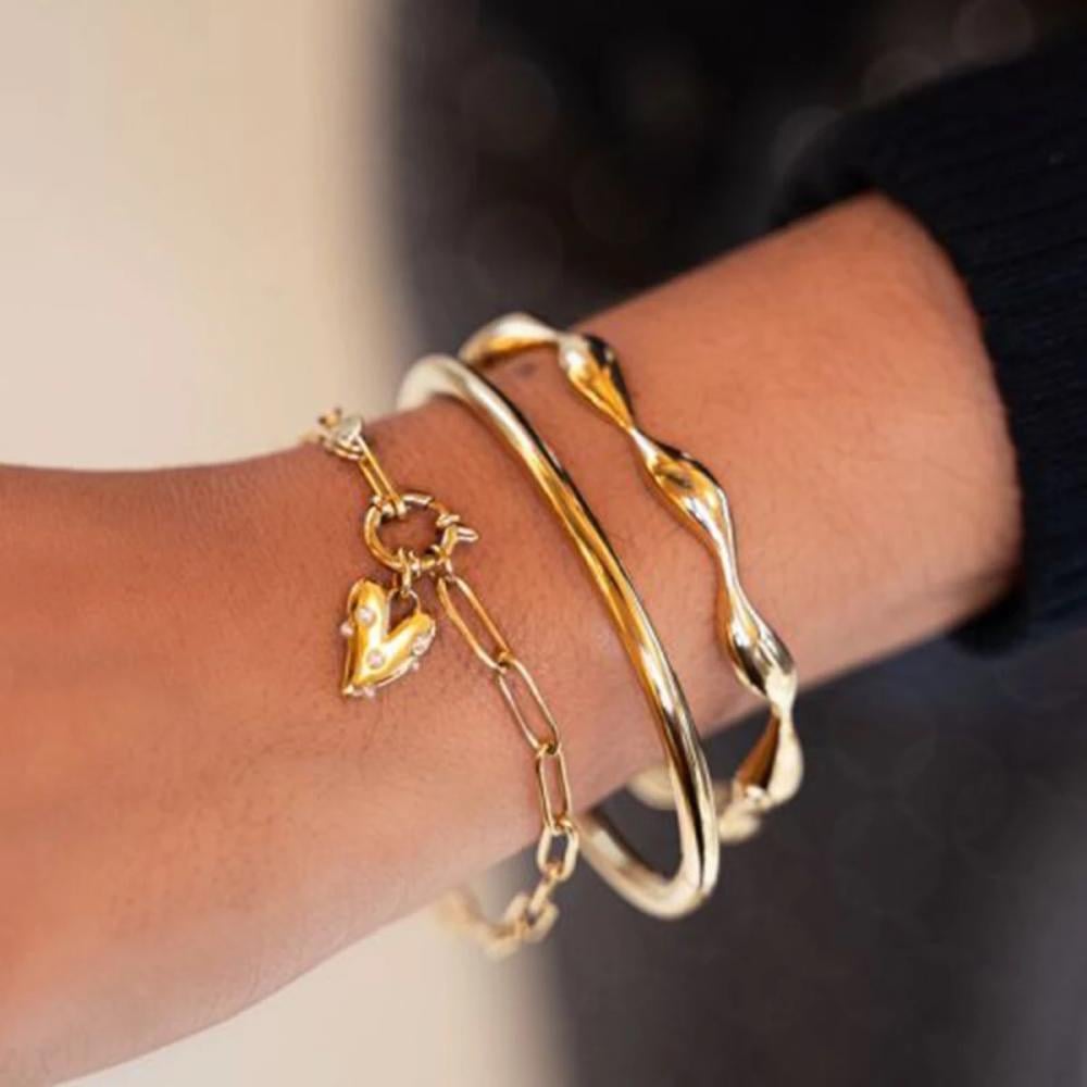 استمتعي بجمال وأناقة سوارة “نبض القلب” المطلية بالذهب عيار 18، التي تجمع بين الرقة والفخامة في تصميم واحد. هذه السوارة الرائعة تتميز بتفاصيلها الدقيقة ولمعانها الساحر، مما يجعلها الرفيق المثالي لكل امرأة تبحث عن لمسة من الأنوثة والرقي.
